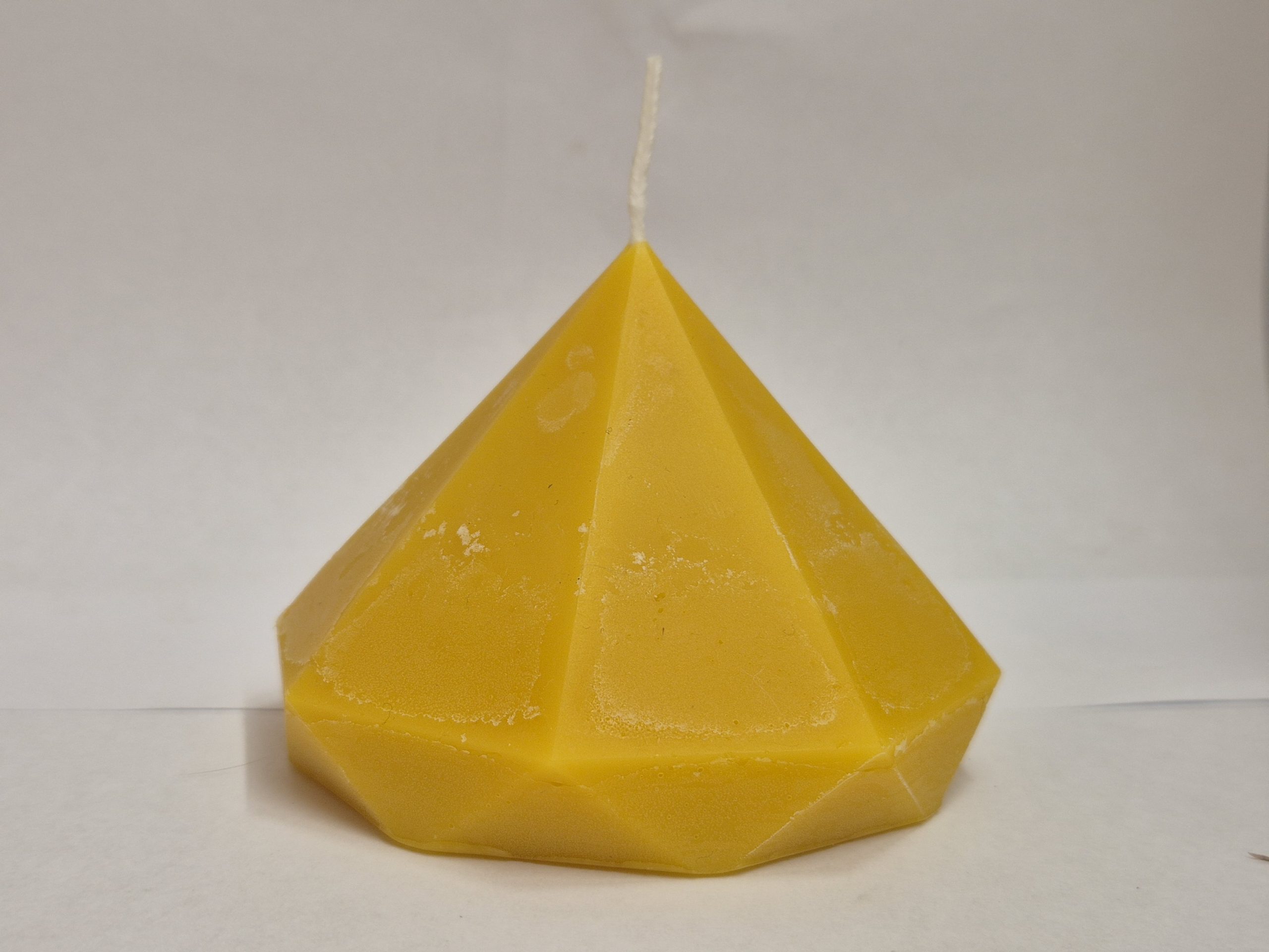 Diese elegant geformte Kerze erinnert an einen feinen Kristall aus Bienenwachs. Ihre klare, geometrische Form bringt natürliche Wärme und Stil auf jeden Tisch. Handgegossen aus reinem Bienenwachs unserer Imkerei im niederösterreichischen Alpenvorland – mit zartem, honigtypischem Duft und ruhiger Flamme.